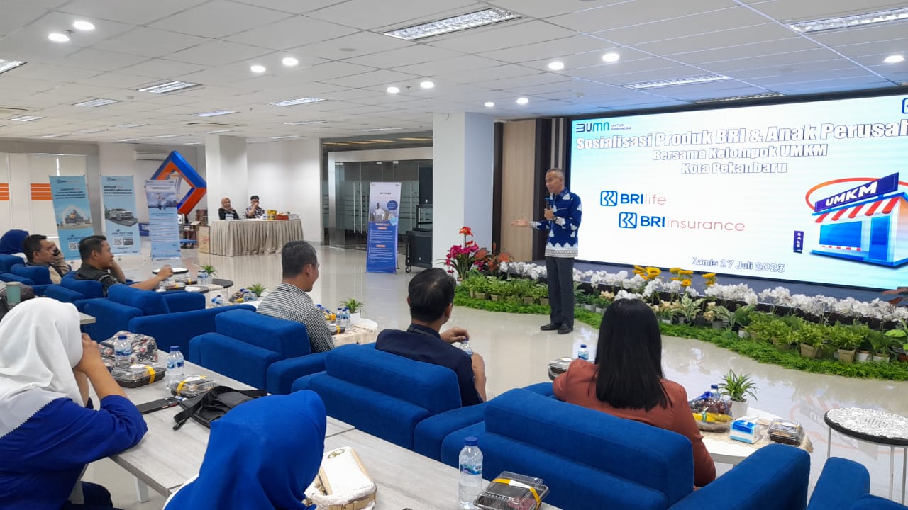 ???????Keterangan Foto : Kegiatan sosialiasi produk BRI dan anak perusahaan bersama kelompok UMKM Kota Pekanbaru